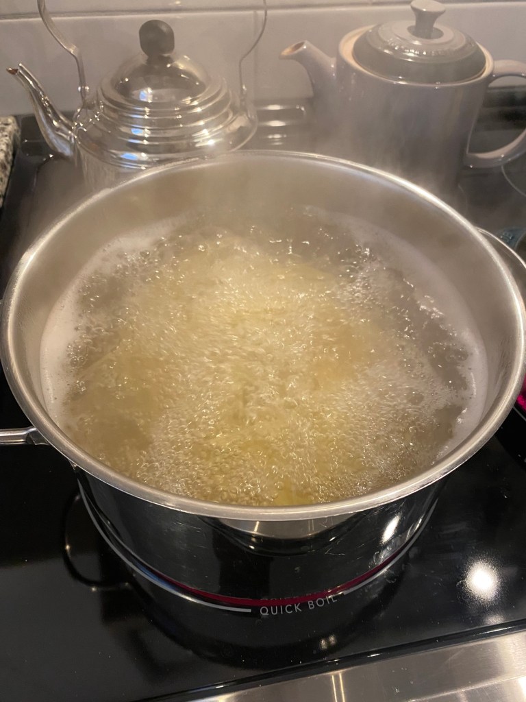 - Next, add the dry spaghetti for your pasta al limone into the pot and let it cook.