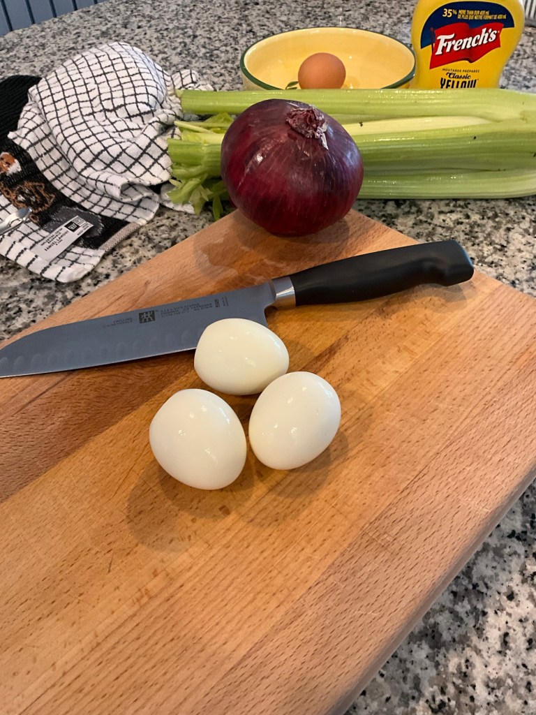 There you have it. If you’re going to double the recipe for a larger crowd, use five hard-boiled eggs instead of six.